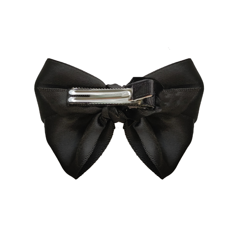 Ghoul inspired 3" bow, complete with alligator clip for easy wear. Perfect for concerts, cosplay, or everyday wear, this bold accessory adds a touch of dark sophistication to any outfit.
